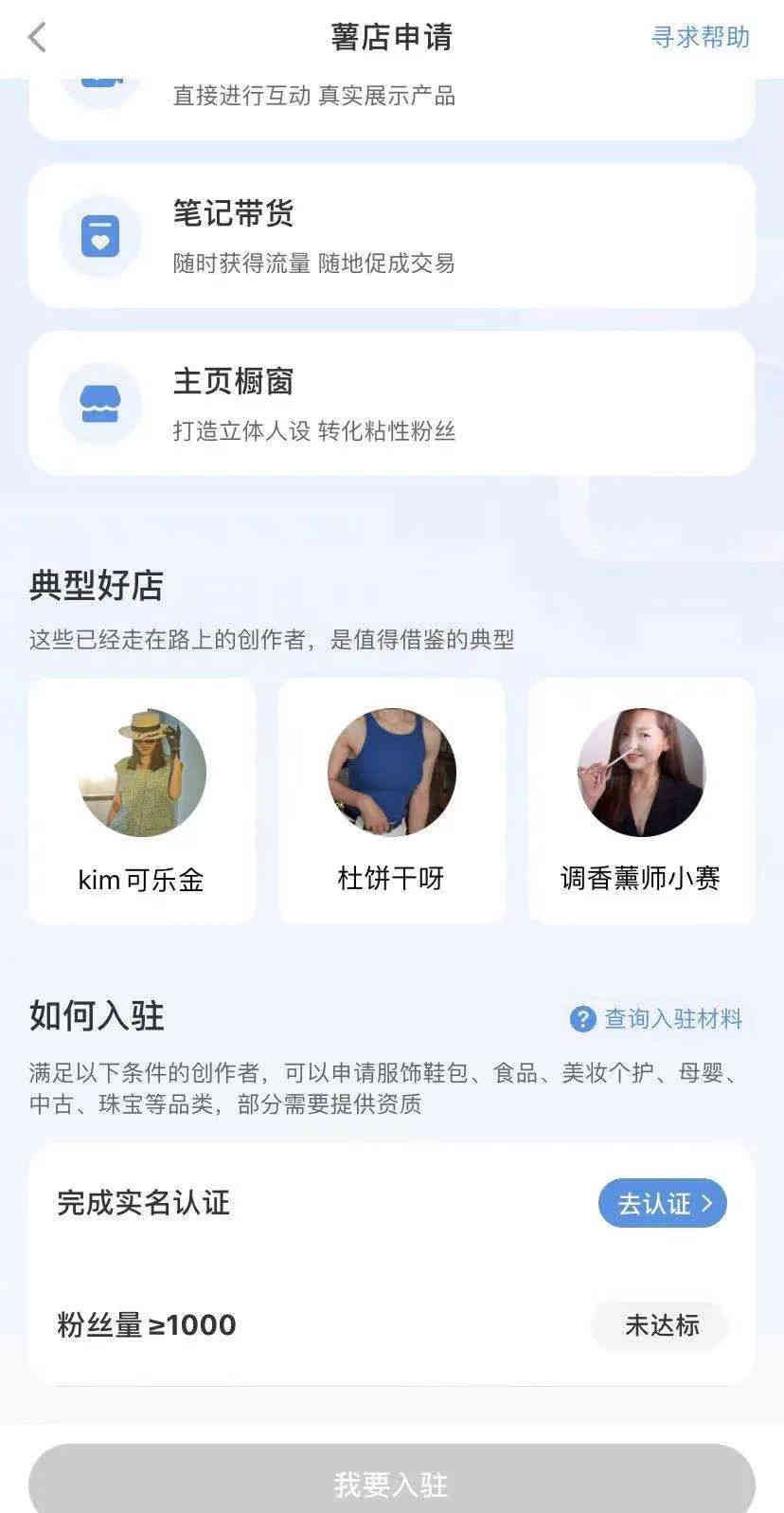 不过现在开通门槛有些高,需要创作者有个人品牌或者品牌方的授权。普通的消费者暂时无法开通薯店