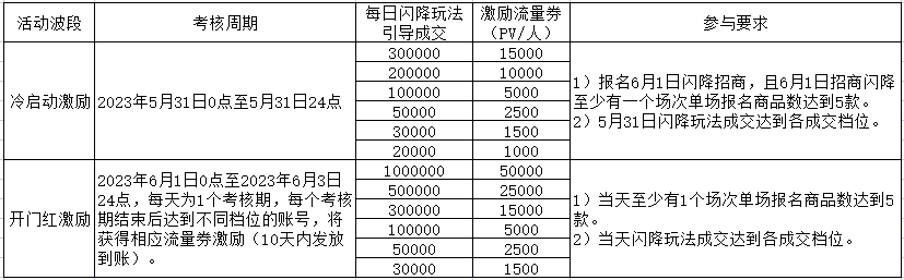 开门红流量激励:分天激励,当天至少有一个场次活动报名5个品的商家,自动进入赛马池。