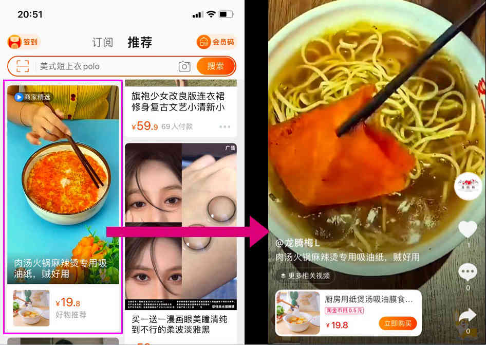 在亲拍的首页会显示最值得做短视频的商品卡片,这个是平台根据店铺商品在公域获得流量曝光的排名,对比后给出的建议。用这款商品为主体制作相关短视频,在淘系会更容易获得流量。