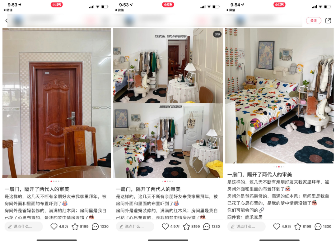 封面分析:几张图片粗略的展现出了房间内外的区别以及风格,这算不算是审美差异呢,老一辈讲究中古美,而现代年轻人的风格千变万化,那么问题就来了,你的家里是不是也像博主那样门外门里是两种世界呢?