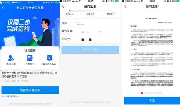 第三步:跳转至支付宝,进行绑定,与随机分配的服务商进行签约。