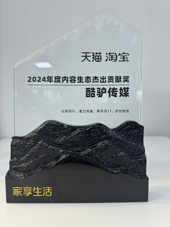 恭喜酷驴传媒荣获 2024 年度天猫内容生态杰出贡献奖!这一殊荣是天猫平台对我司卓越成就的高度认可,也是在电商内容领域辛勤耕耘的璀璨结晶。